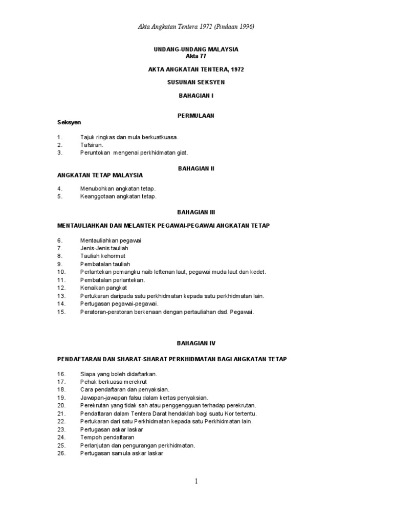 Akta Angkatan Tentera 1972 Pdf Document