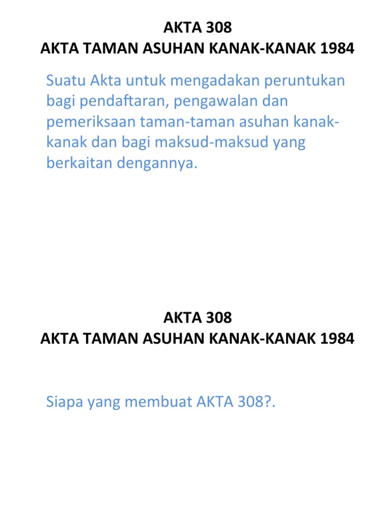 Akta Taman Asuhan Kanak Kanak Akta 308 Pnmb2u