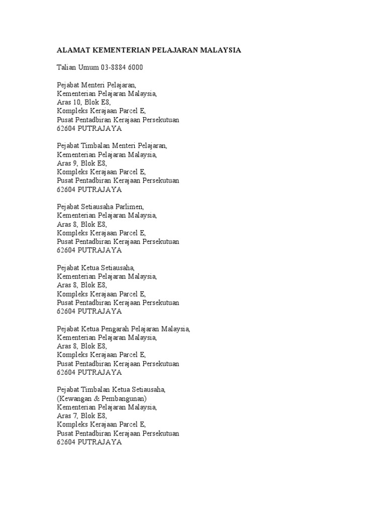 Alamat Kementerian Pelajaran Malaysia