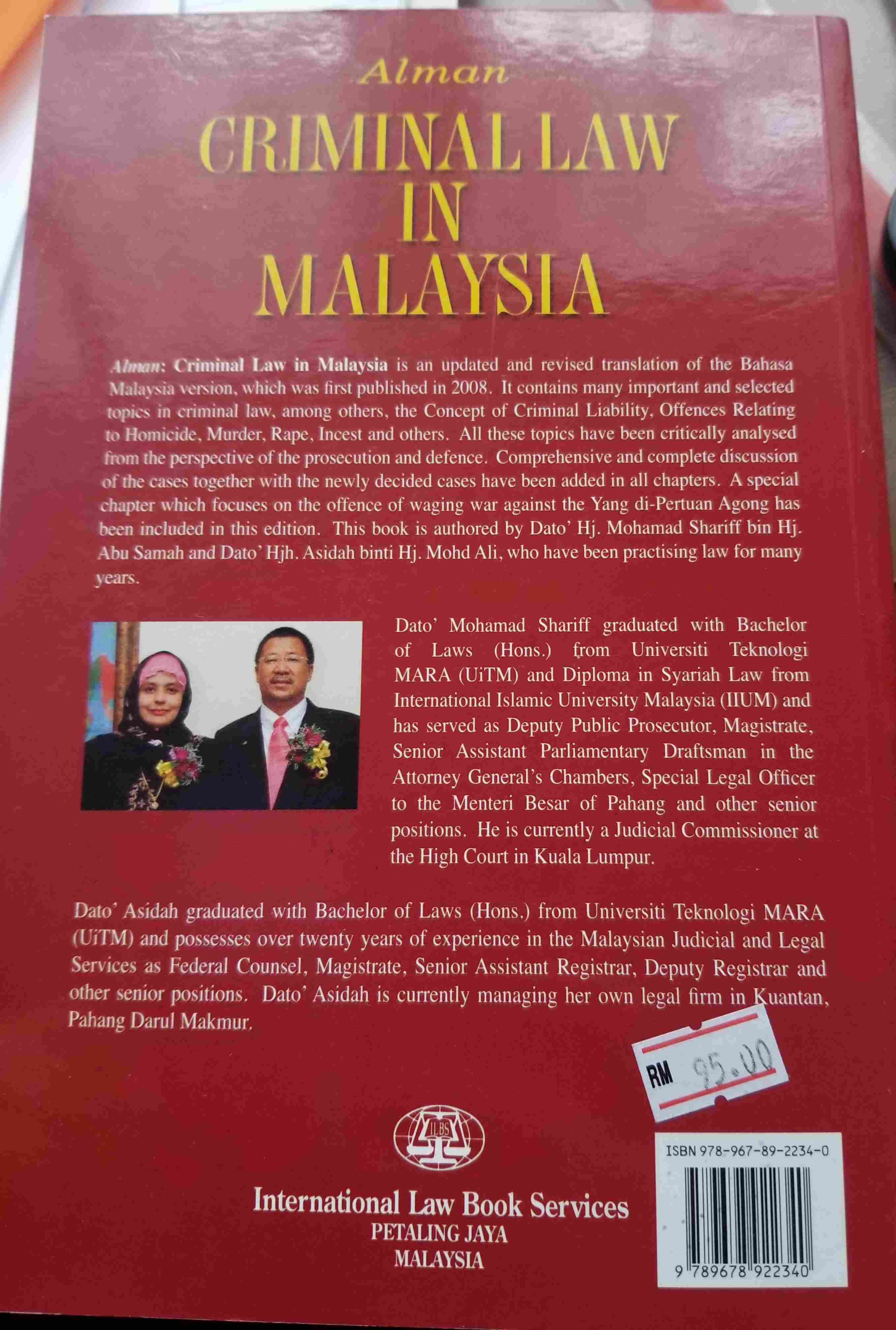 Alman Criminal Law In Malaysia Author Dato Hj Mohamed Shariff Dato Hjh Asidah Shopee Malaysia