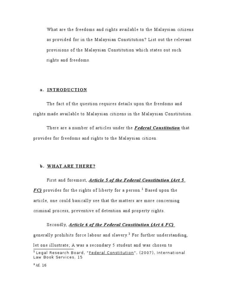 Freedoms And Rights Available To The Malaysian Citizens As Provided For In The Malaysian Constitution United States Constitution Constitution
