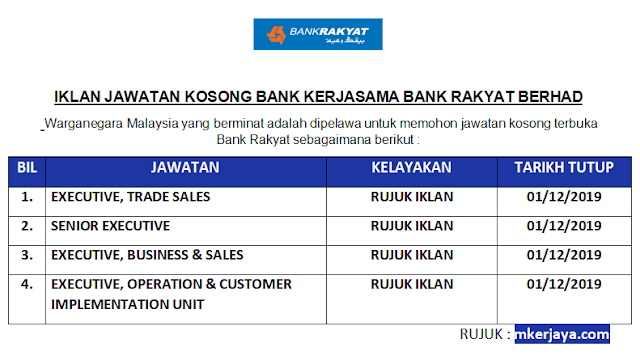 Terkini Bank Kerjasama Bank Rakyat Berhad Membuka Pelbagai Kekosongan Jawatan Ambilan November Disember 2019 Malaysia Kerjaya