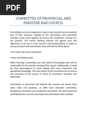 Committes Of Provincial And Pakistan Bar Council Advocate Tribunal
