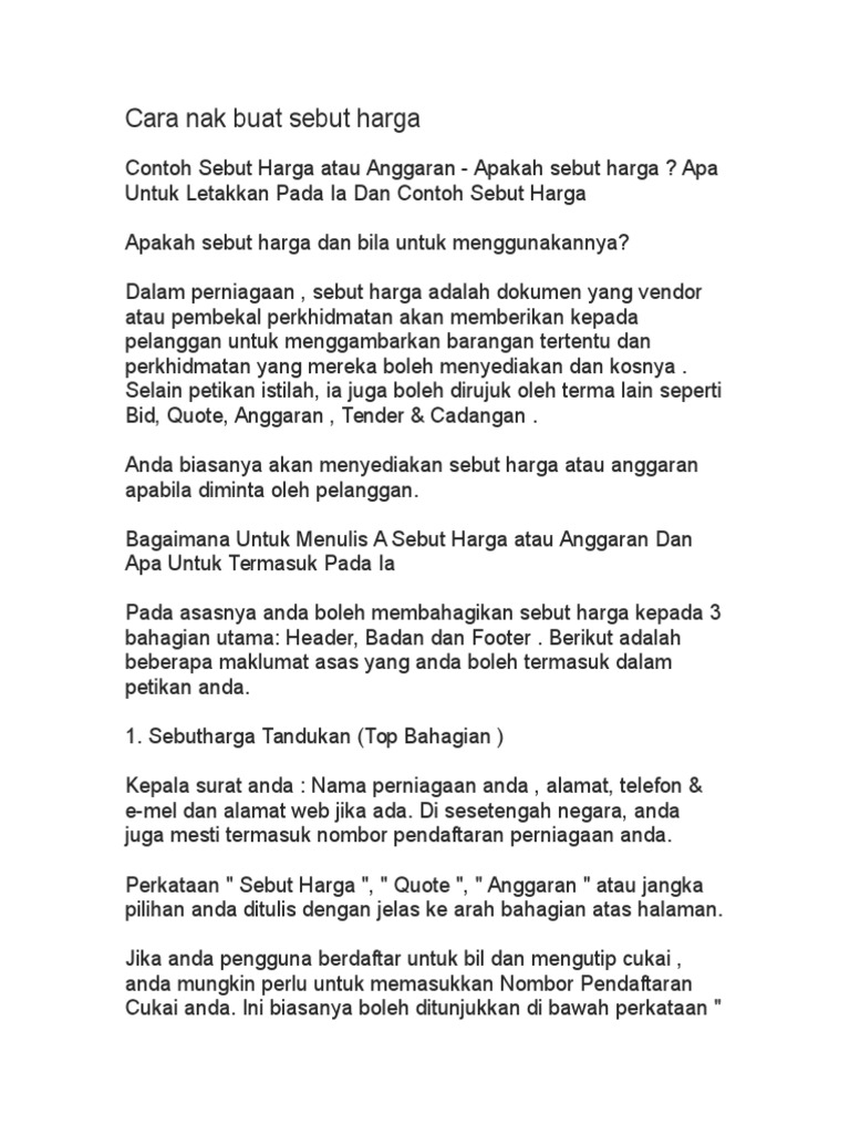 Cara Nak Buat Sebut Harga Docx