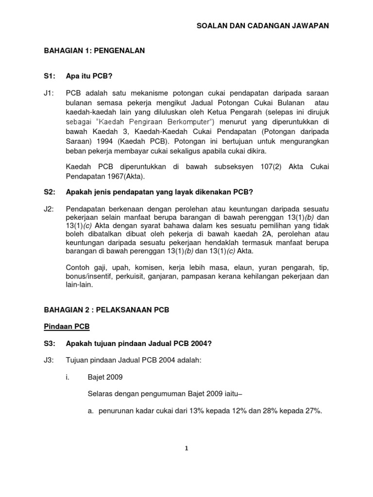Soalan Dan Cadangan Jawapan Bahagian 1 Penghapusan Pengurangan 20 Ke Atas Pcb Bagi Saraan Bersih Pdf Document
