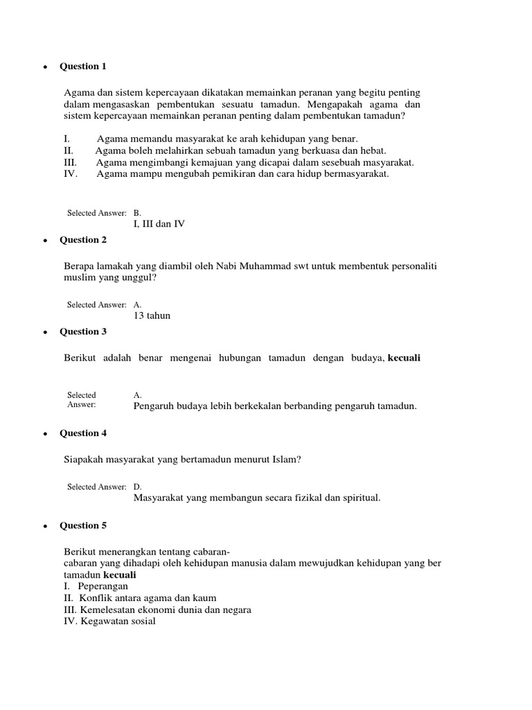 Quiz 1 Docx Question 1 Berikut Adalah Benar Mengenai Hubungan Tamadun Dengan Budaya Selected Answer Kecuali B Pengaruh Budaya Lebih Berkekalan Course Hero
