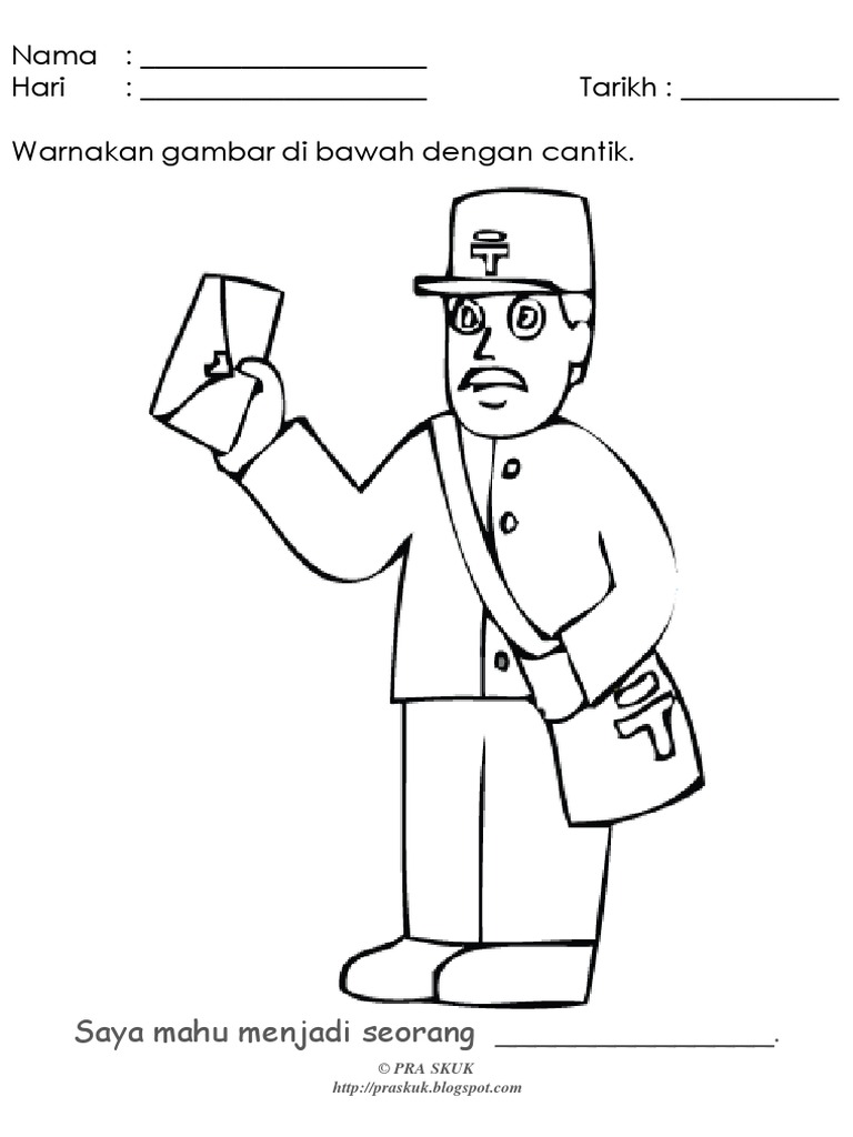 Prasekolah Gambar Mewarna Tema Pekerjaan Tidak Beruniform