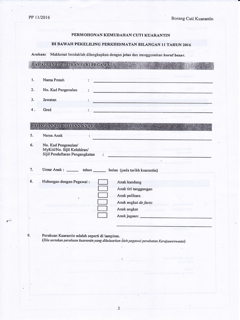 Pp Bil 11 2016 Pekeliling Kemudahan Cuti Kuarantin Pekeliling Terbaru Kerajaan