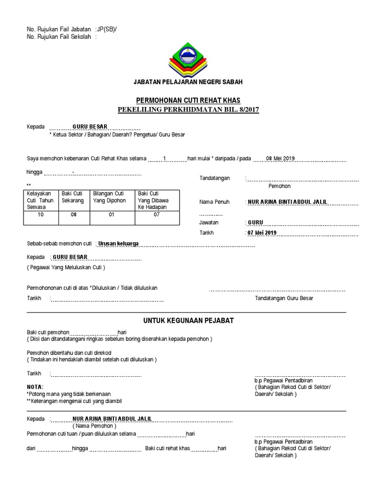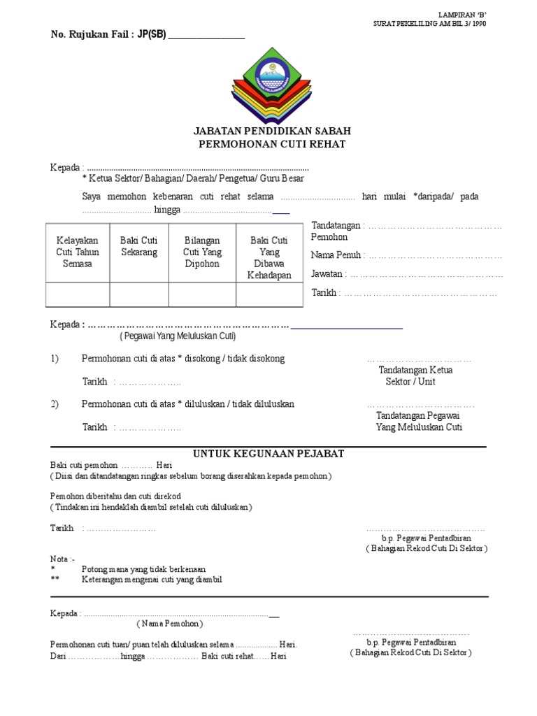 Borang Cuti Rehat Khas Guru Jpn Sabah