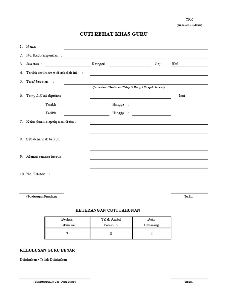 Borangcrk44344445 Borang Cuti Rehat Khas Guru Docx