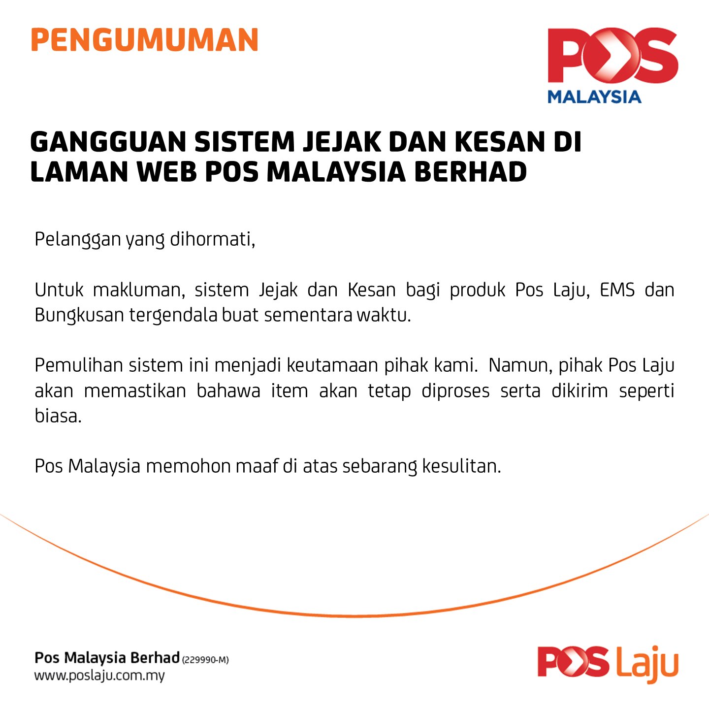 Borang maklum balas pelanggan poslaju. Dapatkan jawapan status anda dengan cara berikut 1 klik link ini. Untuk sebarang maklum balas aduan pertanyaan permohonan melalui emel sila gunakan borang maklum balas pelanggan di laman sesawang lhdnm. Please ensure that all information is clearly written and correct in order to facilitate the review process investigation. Bahagian pembangunan dan pelaksanaan.