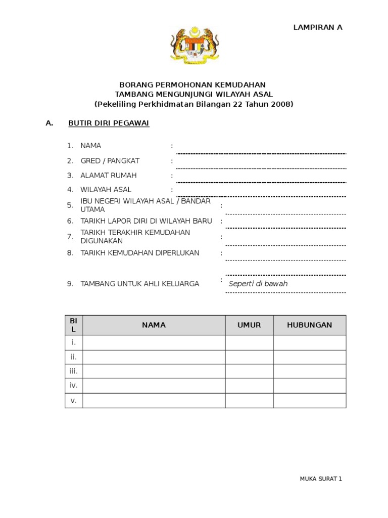 Borangpermohonan Tambang Percuma Mengunjungi Wilayah Asal Mengikut Pekeliling Perkhidmatan Bil Mohd Shahril Academia Edu