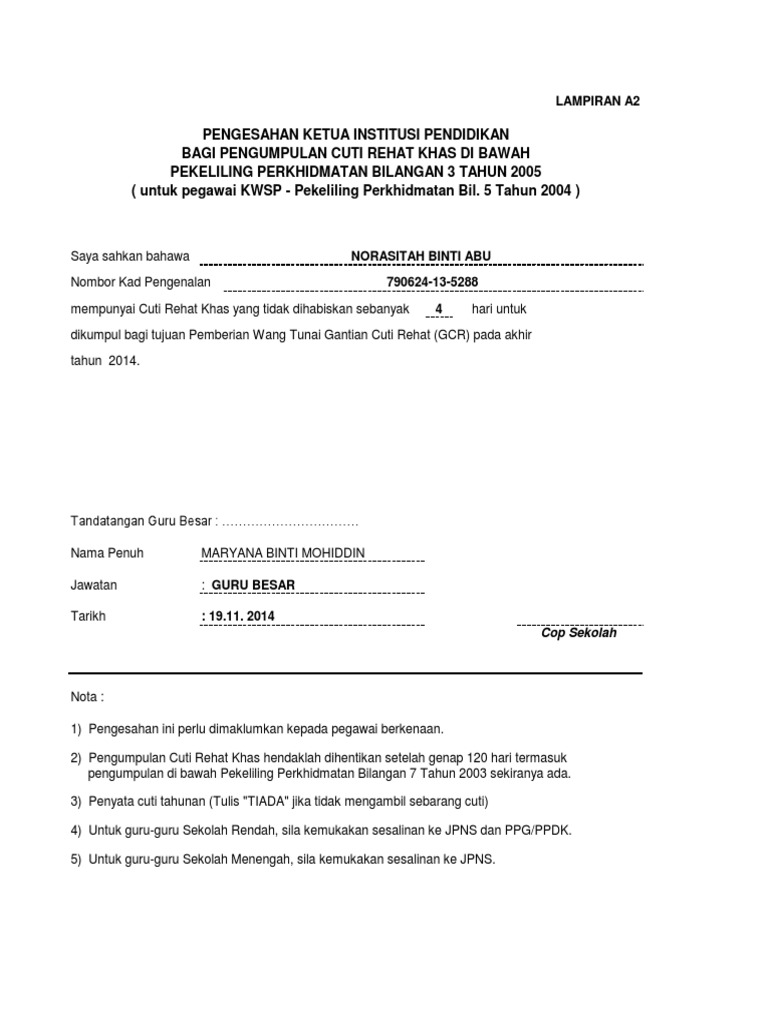Borang Cuti Jual Cuti Rehat Khas Guru Xls Document