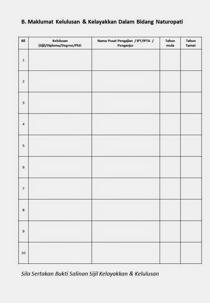 Borang Keahlian Persatuan Pengamal Utama Perubatan Naturopathy Malaysia M A N I S