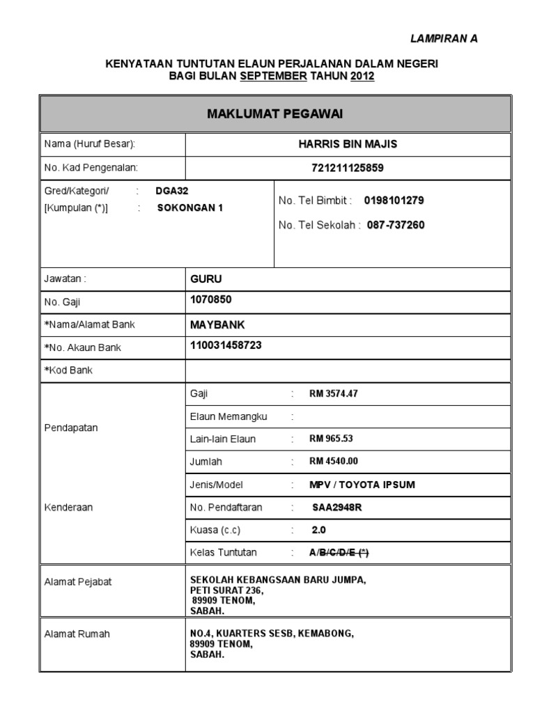 Borang Tuntutan Elaun Perjalanan Dalam Negeri Guru Apdm Kehadiran