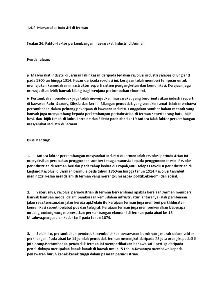 Sejarah Stpm P3 Ciri Ciri Masyarakat Industri Di Jerman