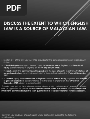 Pdf The Reception Of English Law In Malaysia And Development Of The Malaysian Common Law