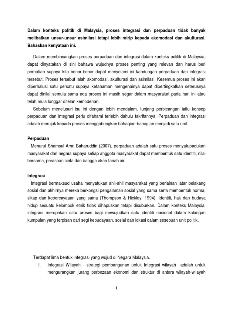 Soalan 1 Asimilasi Dalam Politik Malaysia