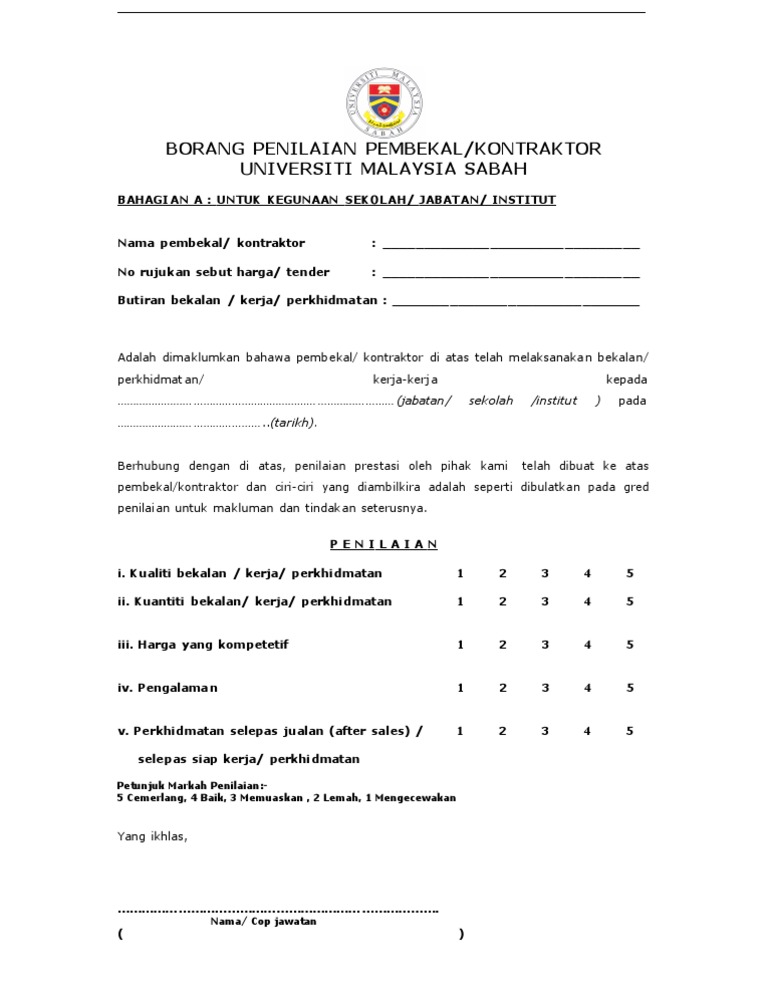 Borang Penilaian Prestasi Pekerja Syarikat