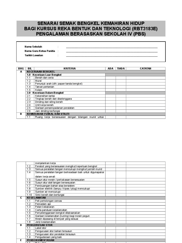 3 2 Senarai Semak Bengkel Kemahiran Hidup
