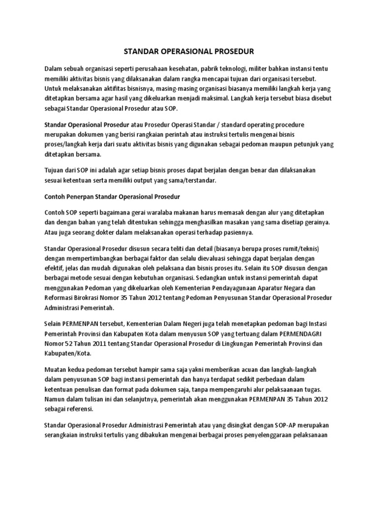 Sop yang telah ada mungkin hanya perlu dimodifikasi dan diperbarui atau anda. Sebagai informasi hampir semua perusahaan organisasi non profit ngo hingga militer. Apa apa perniagaan yang ingin berkembang melangkaui aras yang kini memerlukan sop untuk meningkatkan.