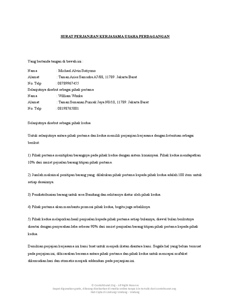 Surat Perjanjian Kerjasama Usaha Perdagangan