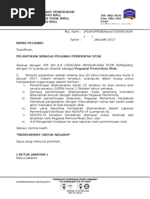 Contoh Surat Pelantikan Pegawai Stor Sekolah