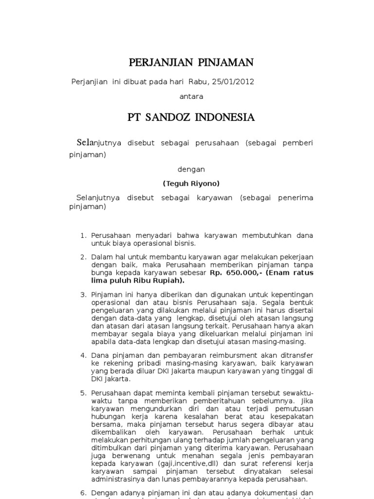 Contoh Surat Perjanjian Hutang Piutang Antar Perusahaan Bagikan Contoh