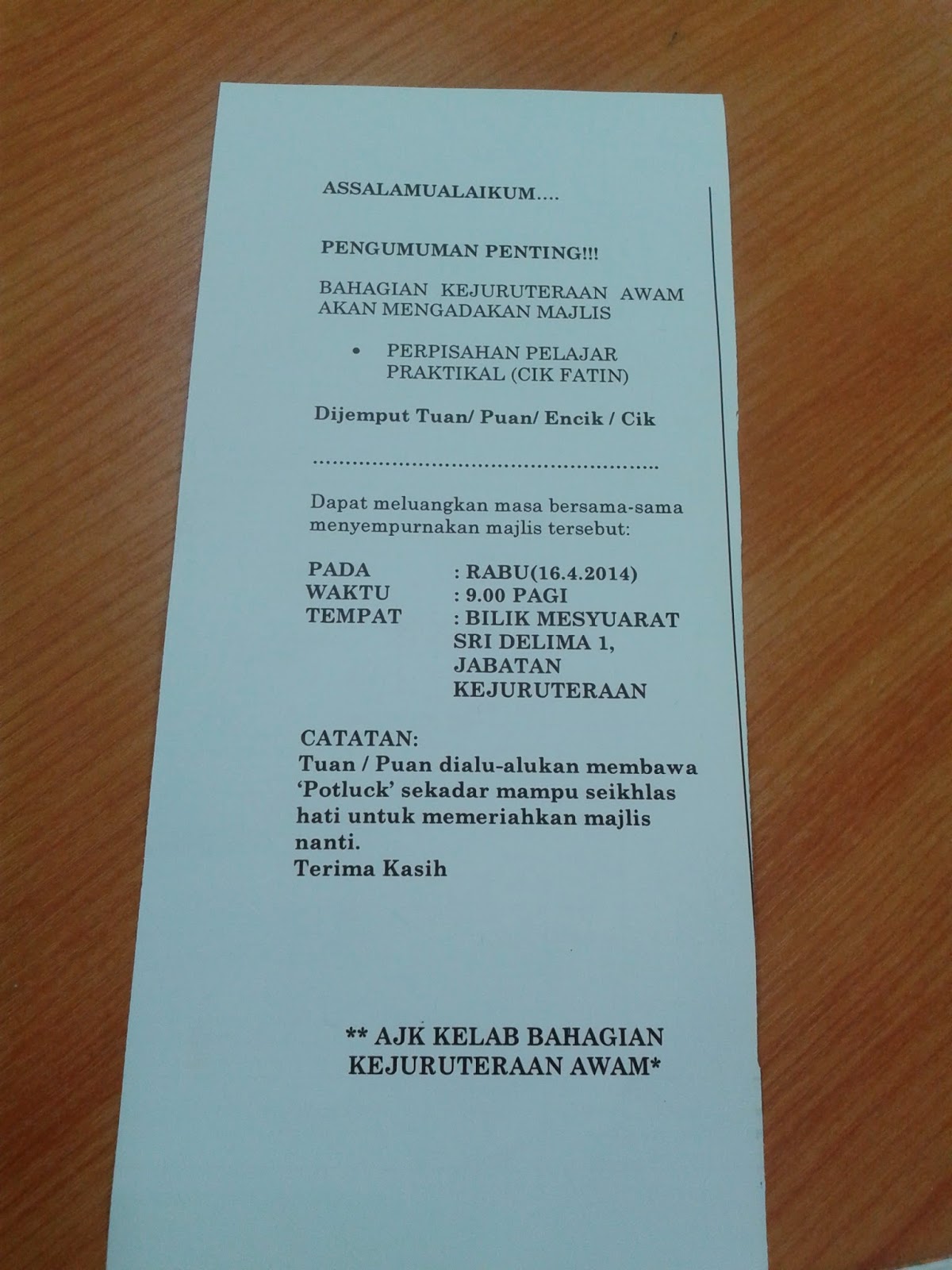 Teks Ucapan Majlis Perpisahan Pelajar Praktikal Bos Rendang