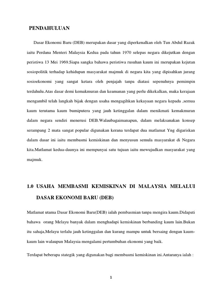 Dasar Ekonomi Baru Sejarah Form 5
