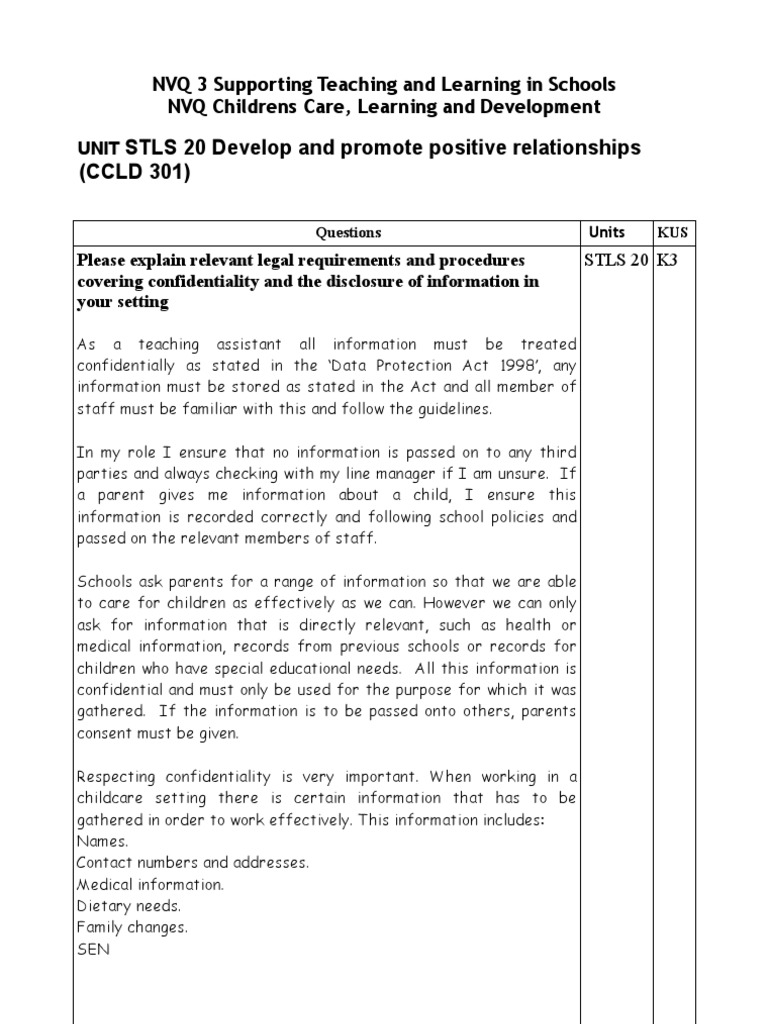 Please Explain Relevant Legal Requirements And Procedures Covering Confidentiality And The Disclosure Of Information In Your Setting Confidentiality Information Privacy