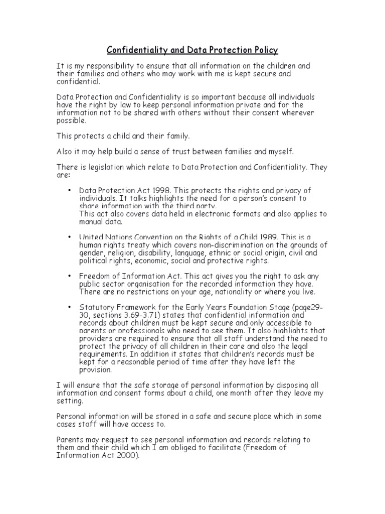 Confidentiality And Data Protection Policy Cosmina Szakacs Academia Edu