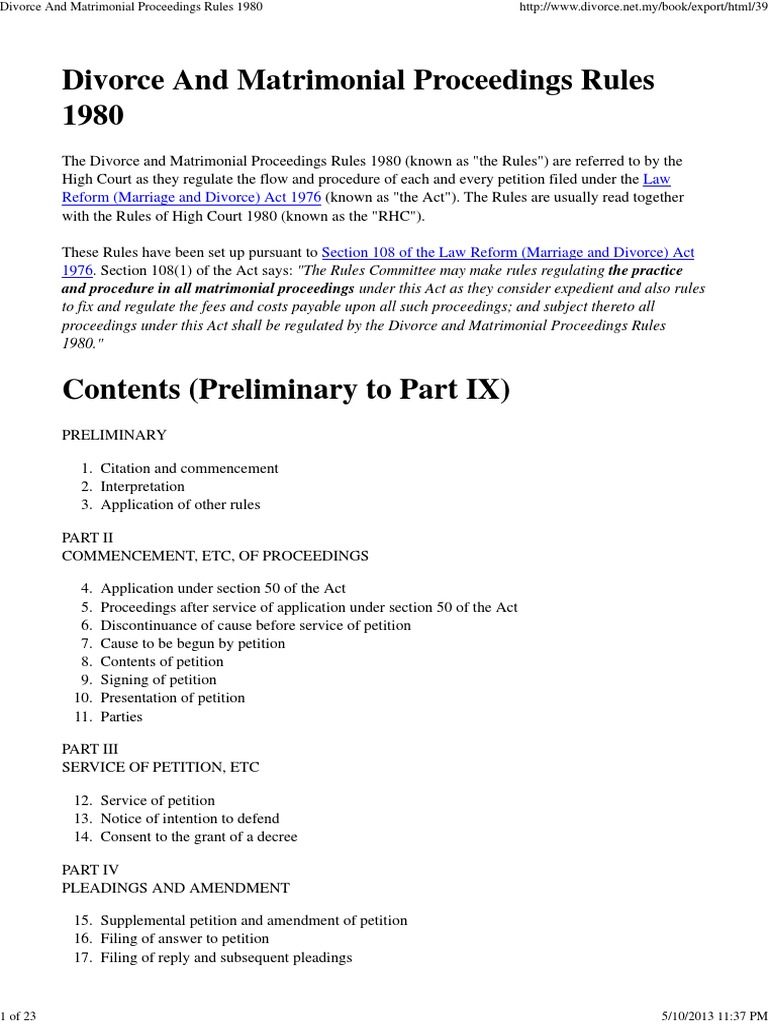 Divorce And Matrimonial Proceedings Rules 1980 Pleading Affidavit