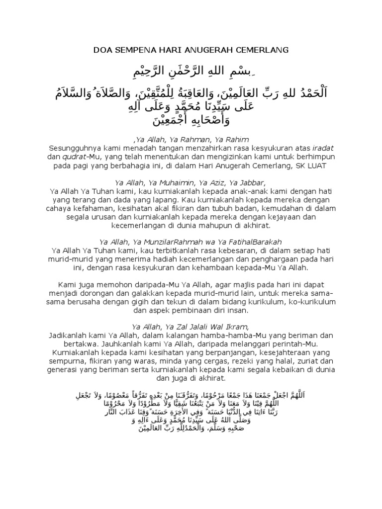 Doa Sempena Hari Anugerah Kecemerlangan Documents