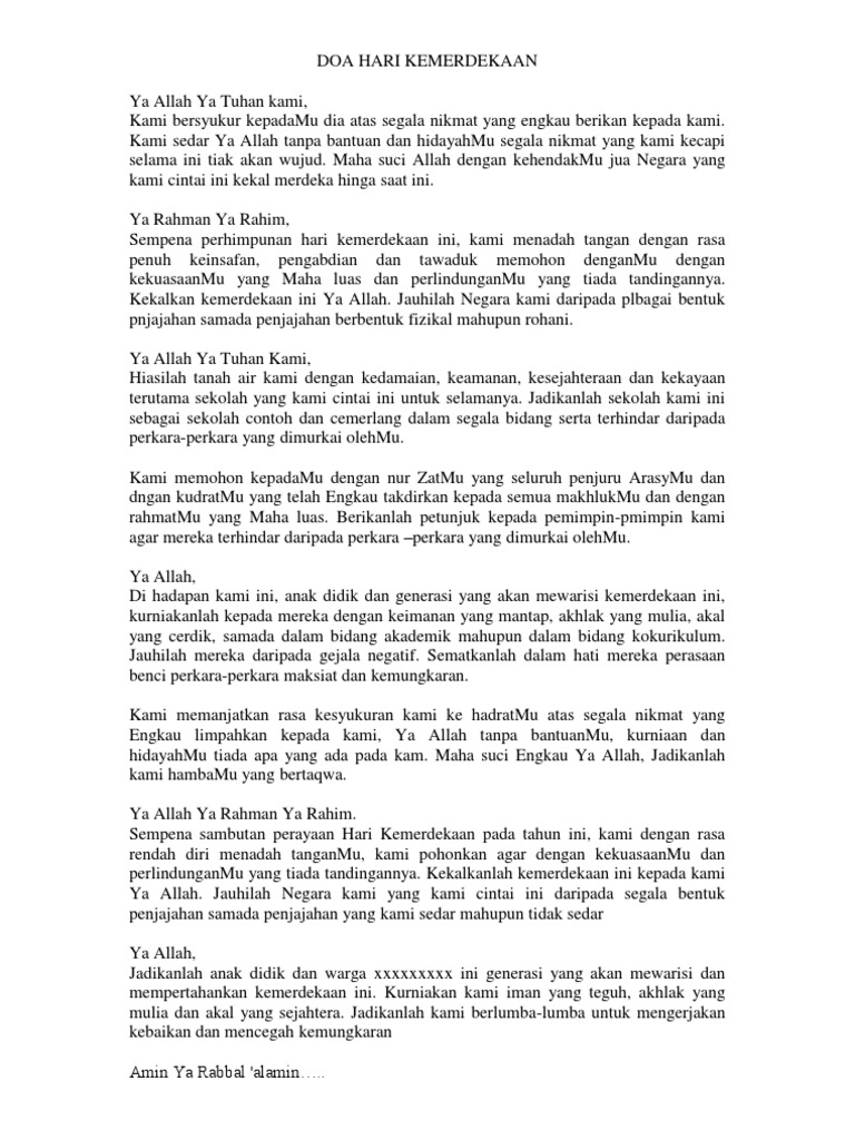 Teks Doa Ambang Merdeka 2020 Pages 1 1 Text Version Anyflip