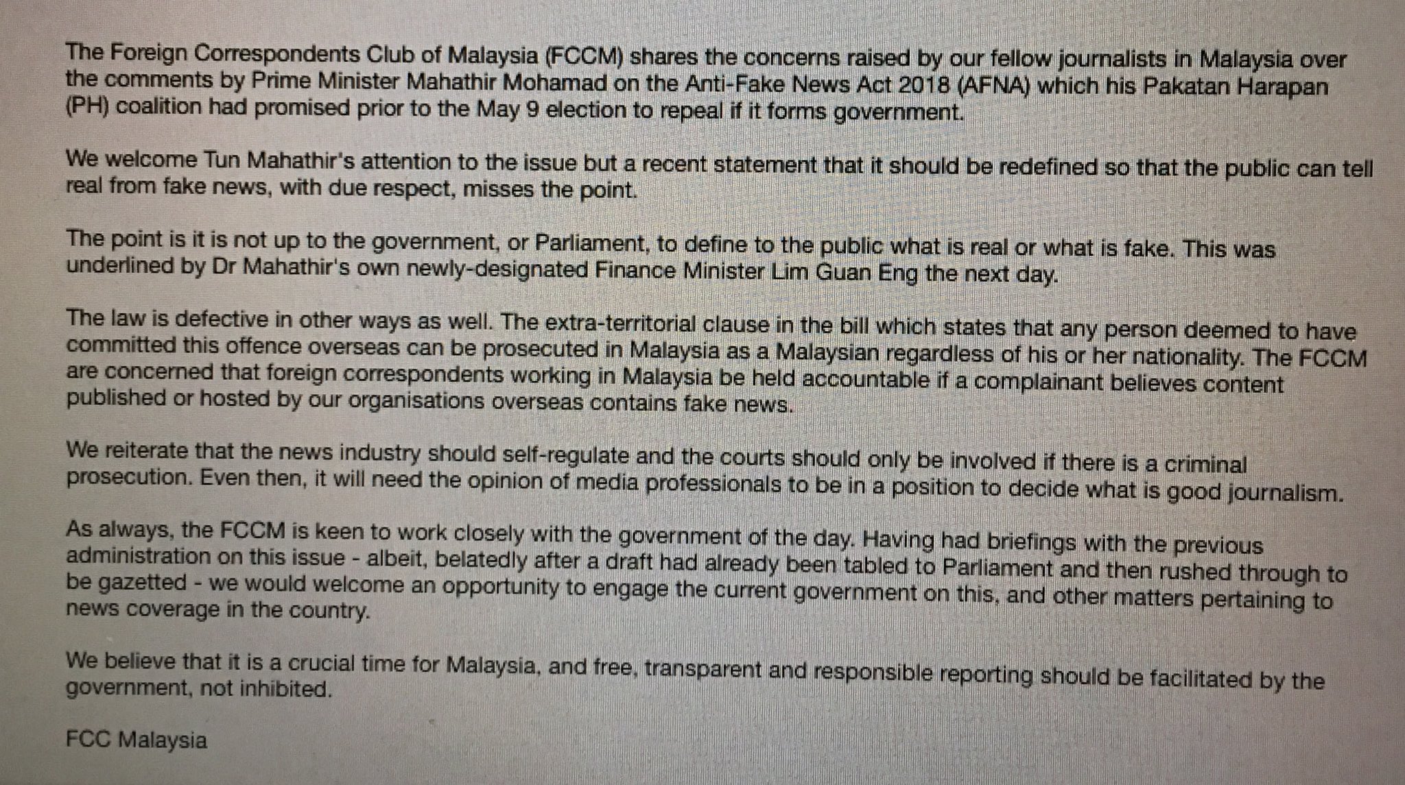 Preeti Jha On Twitter It Is Not Up To The Government Or Parliament To Define To The Public What Is Real Or What Is Fake Statement From The Foreign Correspondents Club Of
