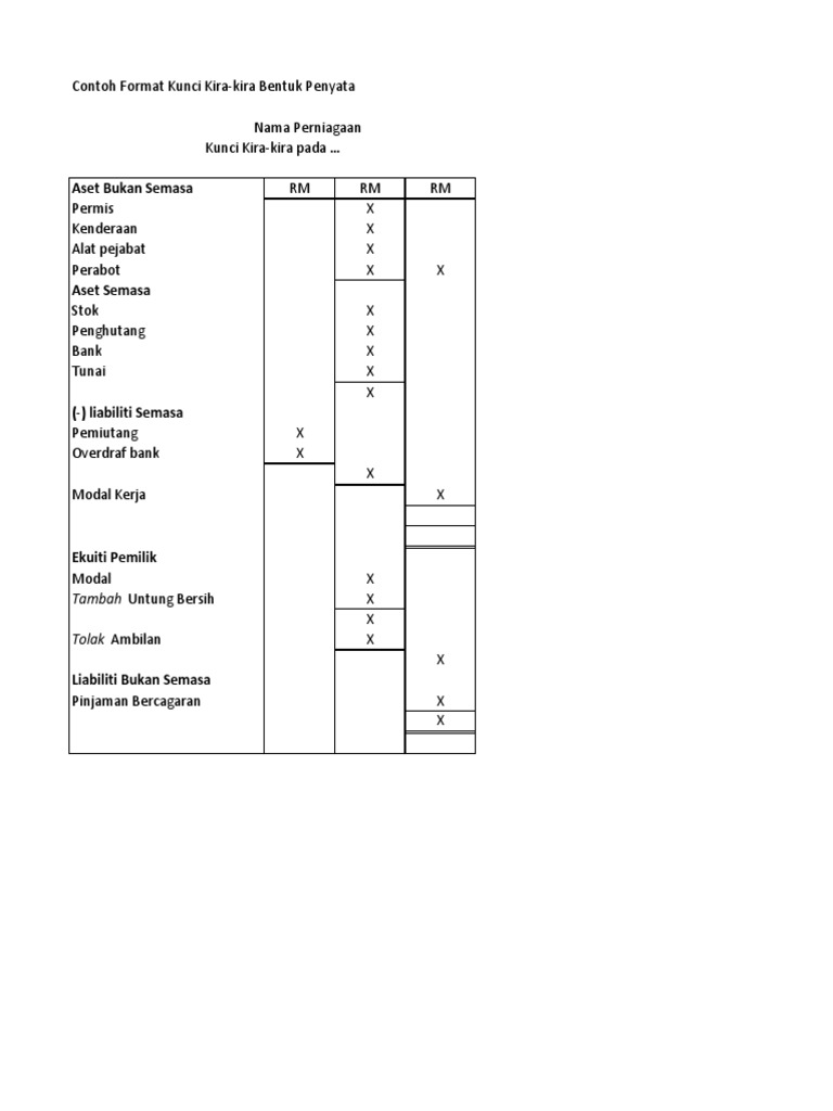 Format Akaun Perdangangan Untung Rugi Kunci Kira Kira