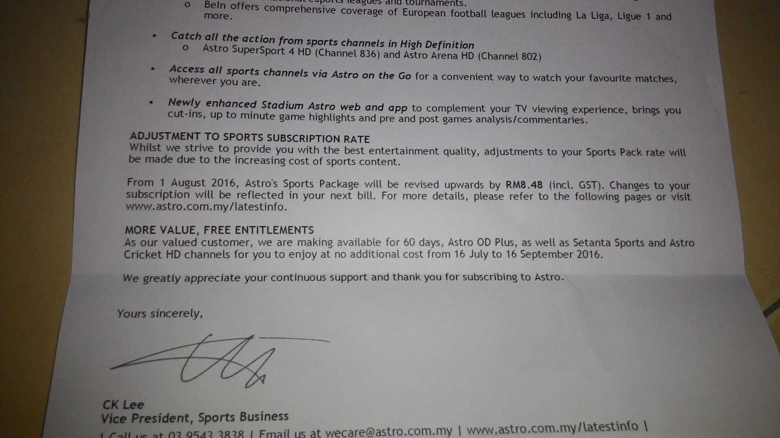Astro Umum Kenaikan Harga Langganan Astro Sports Pack Mulai 1 Ogos 2016