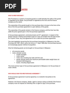 Hire Purchase Acts Notes Law 442 Uitm Studocu