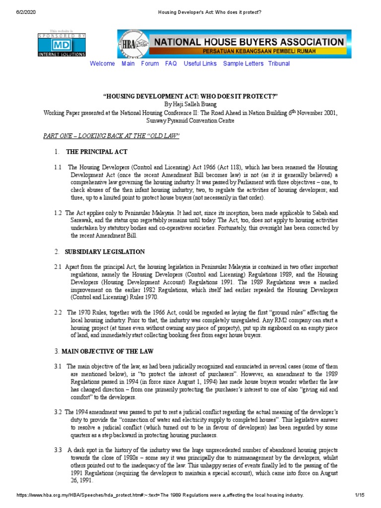 Housing Development Act Pdf Laws Of Malaysia Online Version Of Updated Text Of Reprint Act 118 Housing Development Control And Licensing Act 1966 As Course Hero